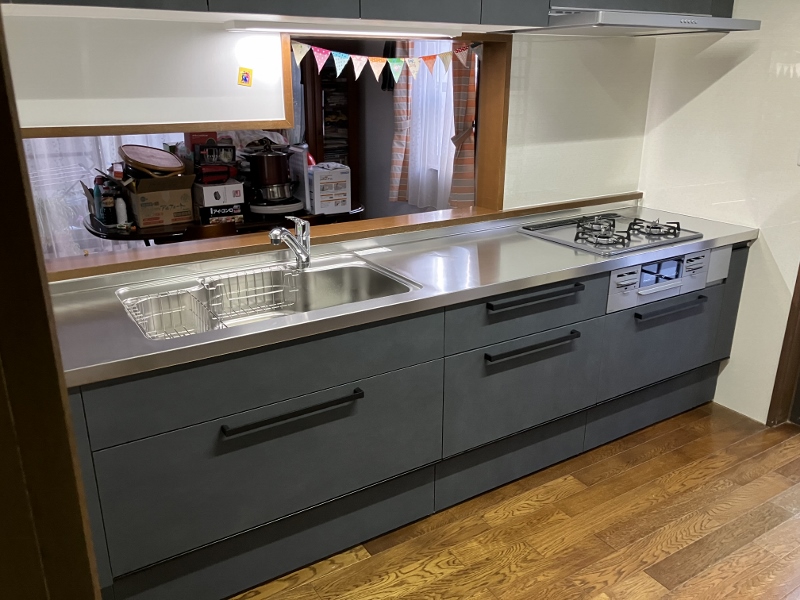 以前のキッチンとは雰囲気が変わり落ち着いたキッチンができあがりました。