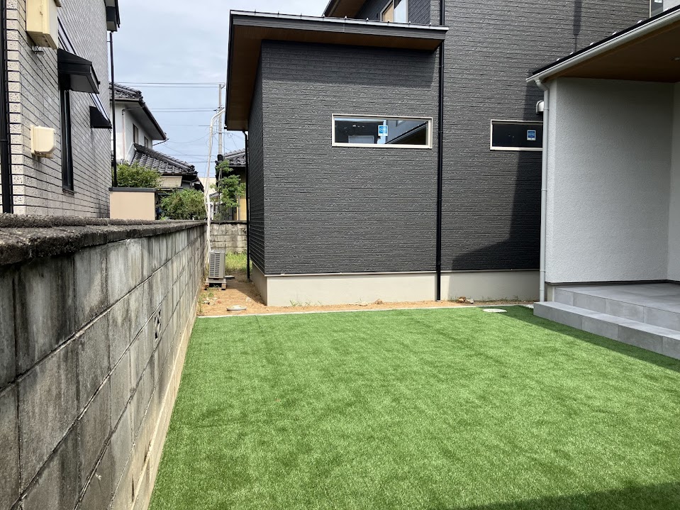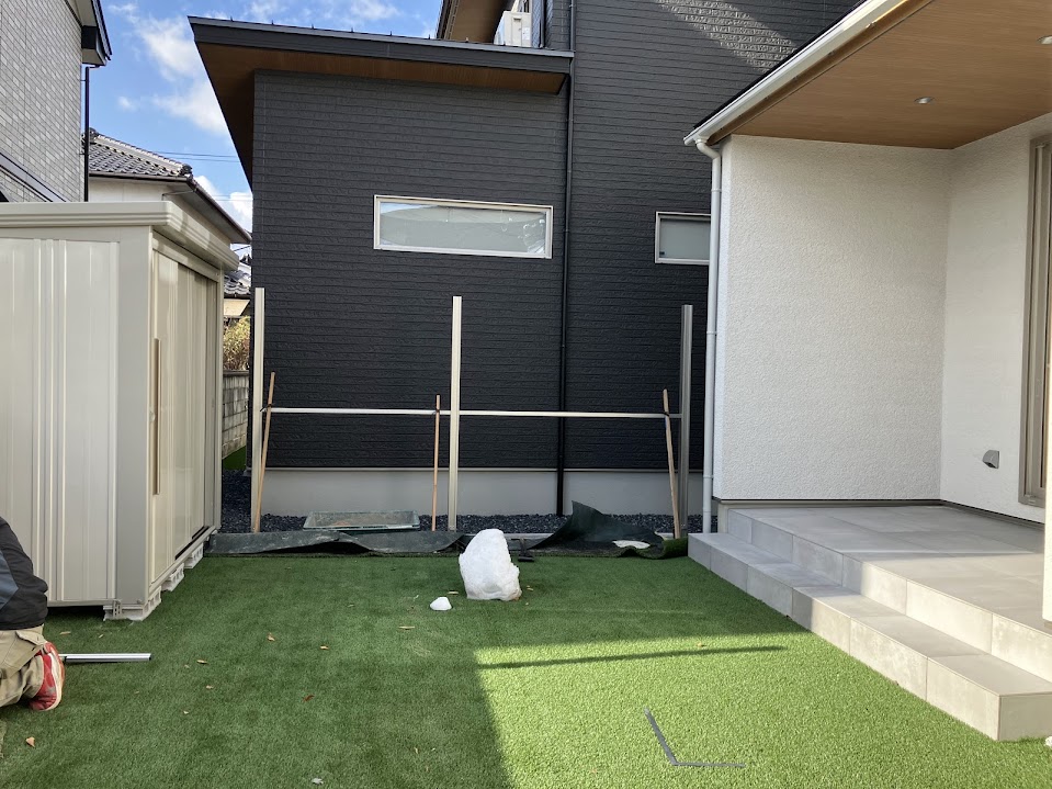 着工前のお庭は、人工芝が敷かれたすっきりとした空間でしたが、