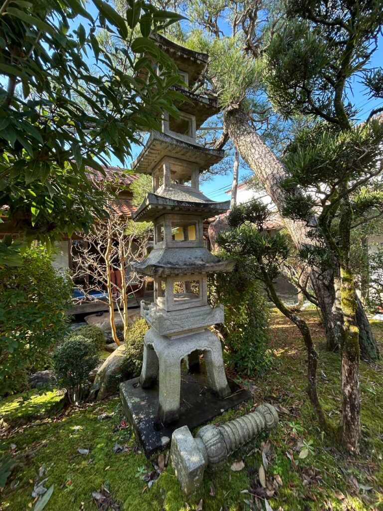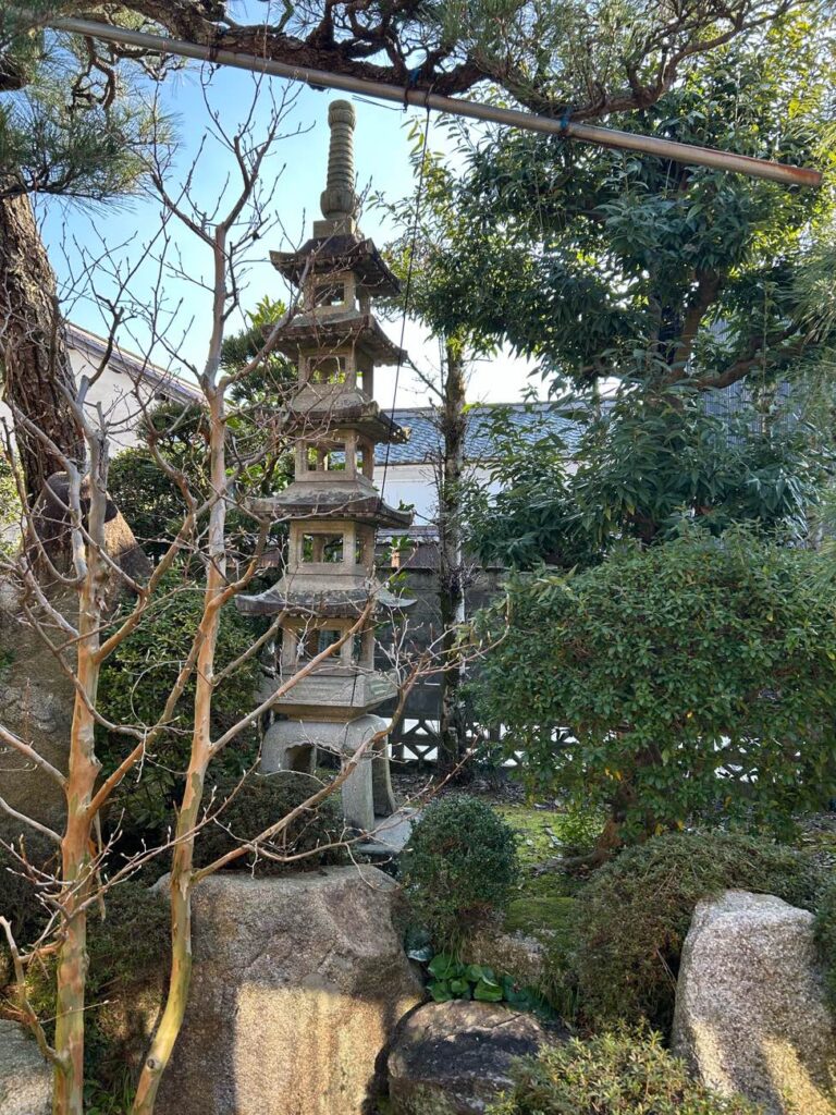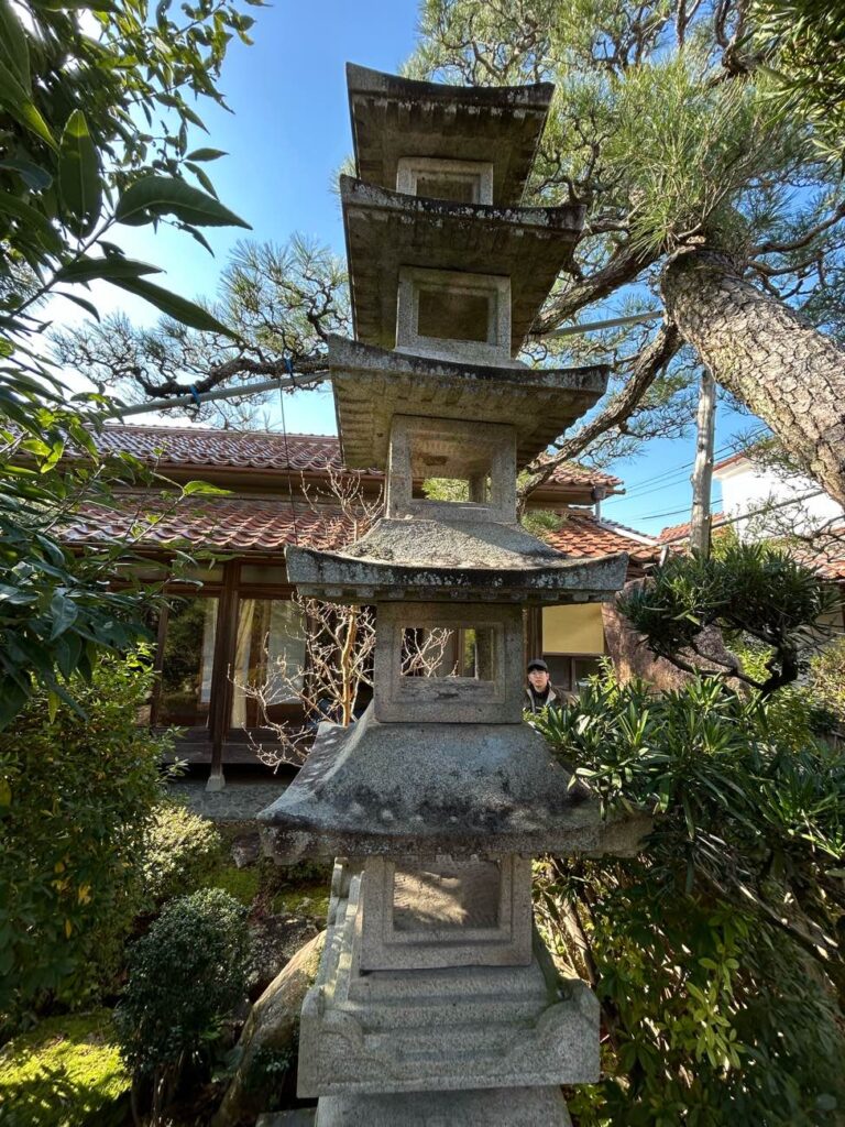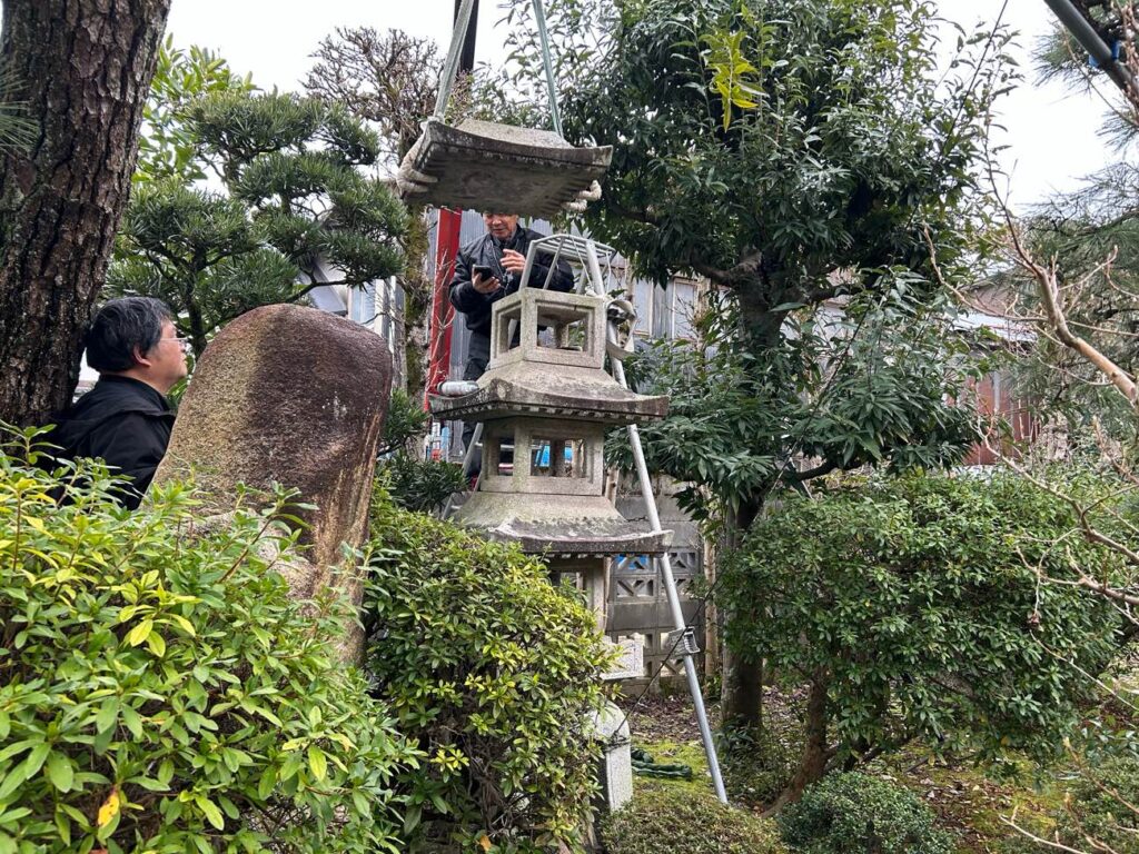 主に蔵の補修工事の時が多いですが、立派な庭も付き物ですので石灯籠や石塔の修理依頼もあります。