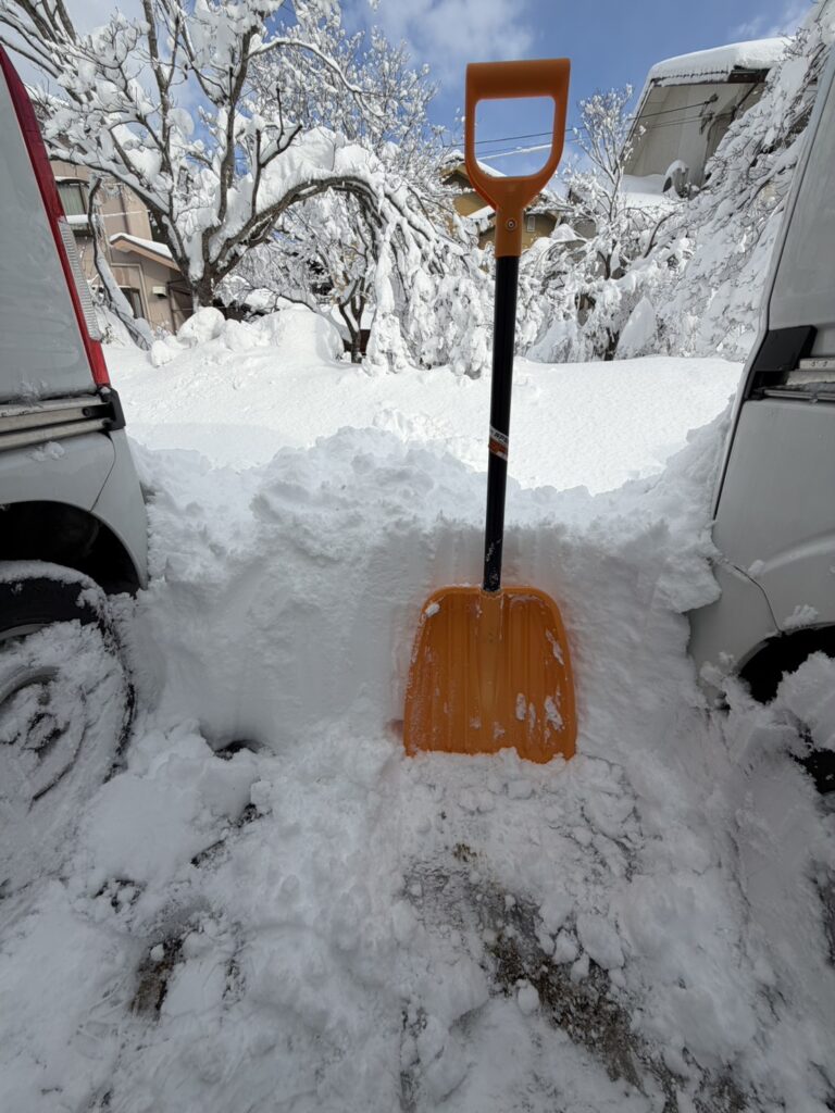 スコップの高さと同じか、それ以上積もっていて驚きました。