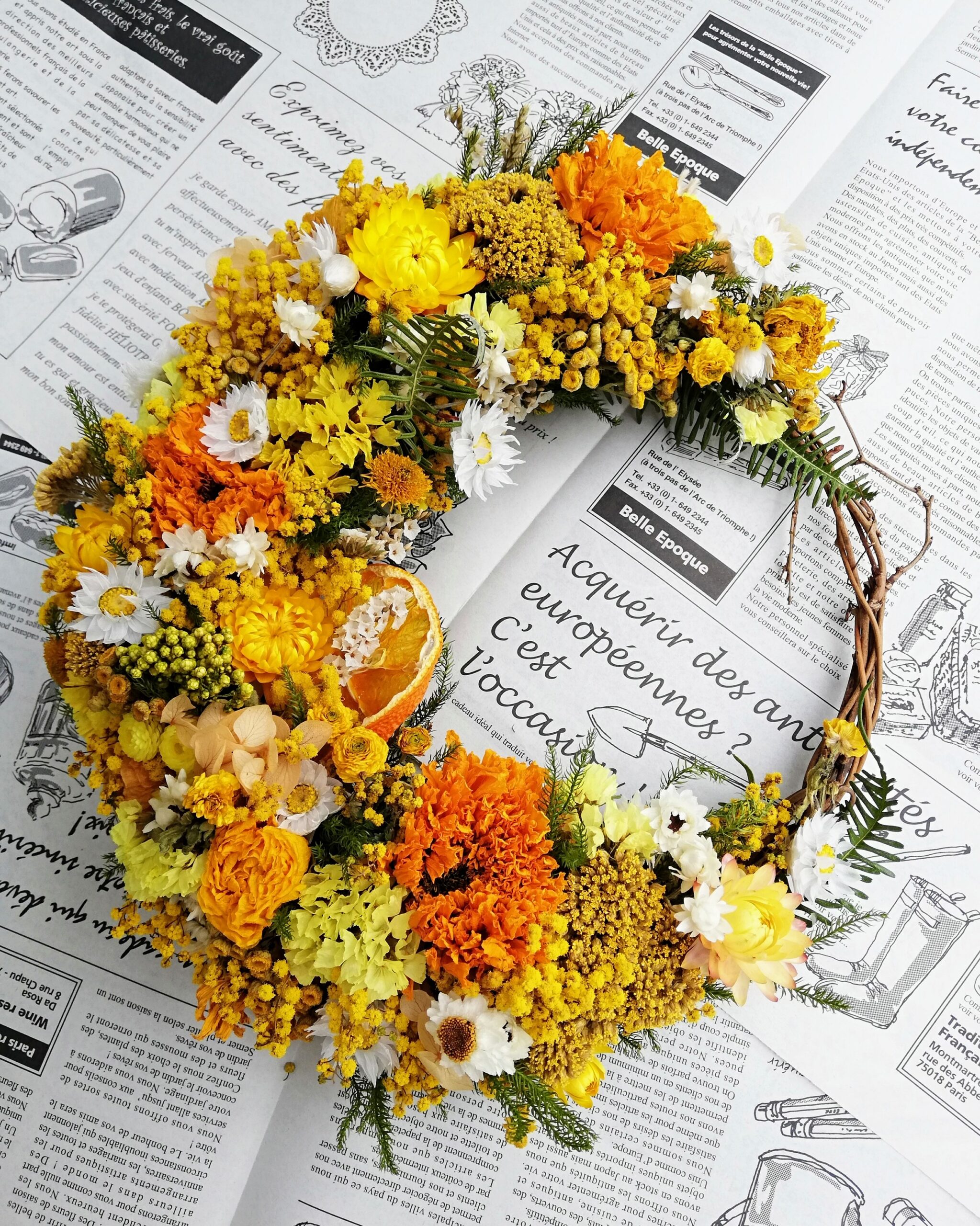 オレンジの甘酸っぱい匂いが香ってきそうなリースと
